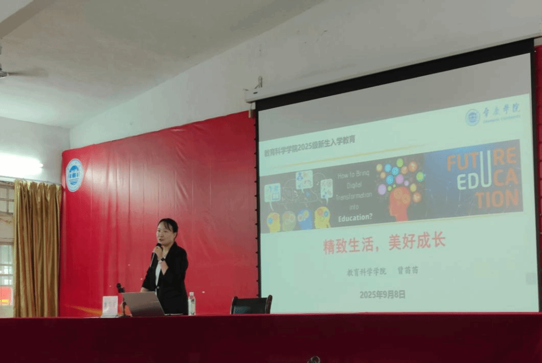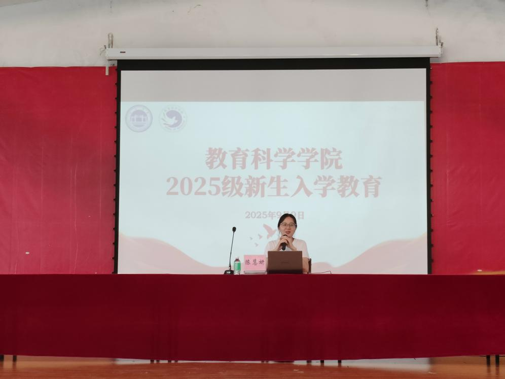 本网讯(通讯员/姚子敏 责编/陈慧妍)为帮助2025级新生尽快适应大学环境,明确专业方向与成长目标,2025年9月8日至9日,教育科学学院在星湖小礼堂顺利开展2025级新生入学教育系列讲座。学院党委副书记何秀华、副院长曾苗苗、黄华以及辅导员陈慧妍分别担任主讲,2025级全体新生参加本次教育活动。